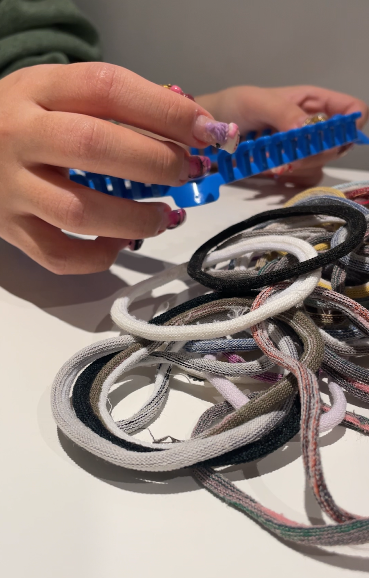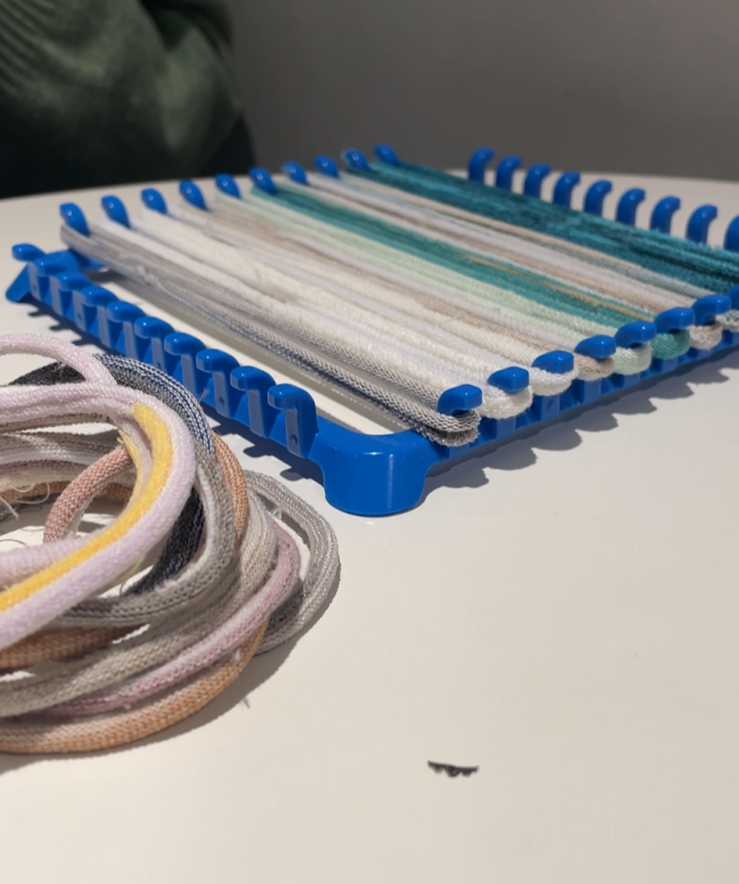 1️⃣ 공예 틀에 양말목을 끼워줍니다!