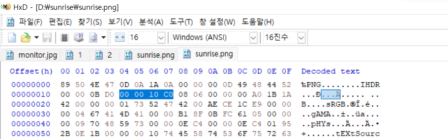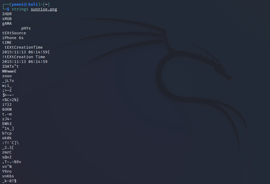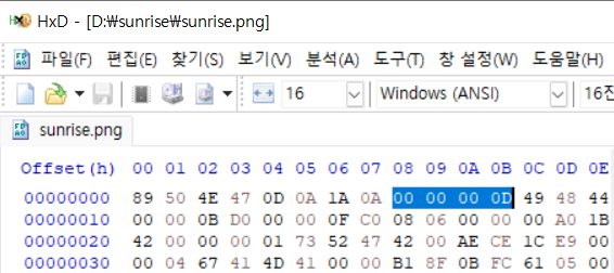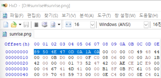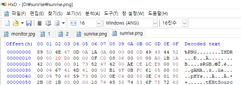이 문제는 sunrise 라는 이름의 png 파일에서 플래그를 찾는 문제다.