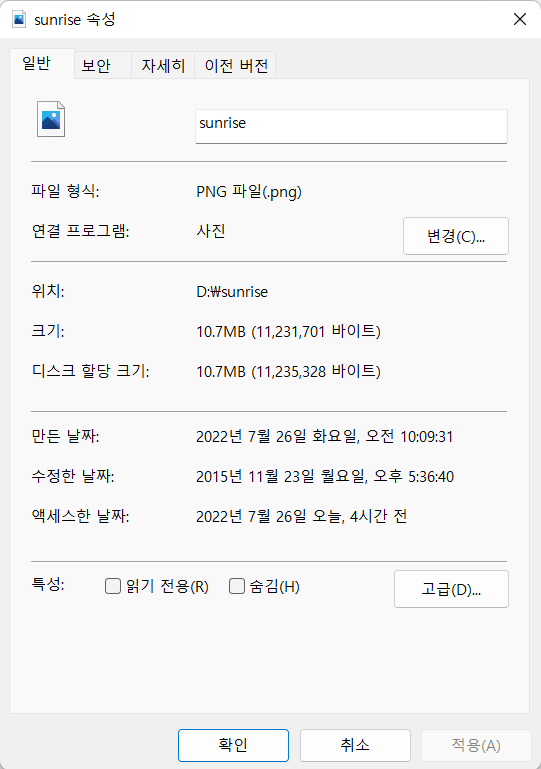 파일 크기가 10MB가 넘어가는 대용량 파일인 걸 확인했다.