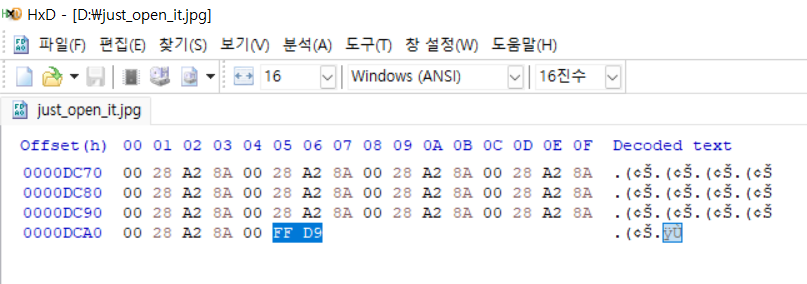 jpg의 푸터 시그니처 FF D9 확인