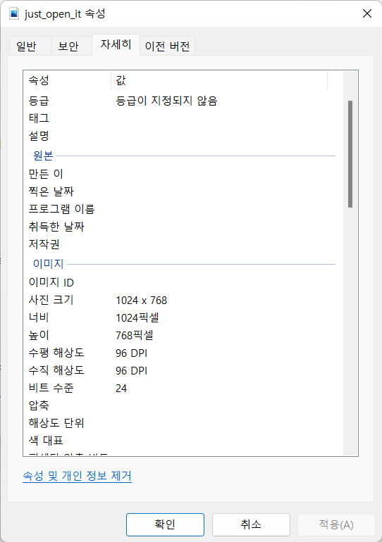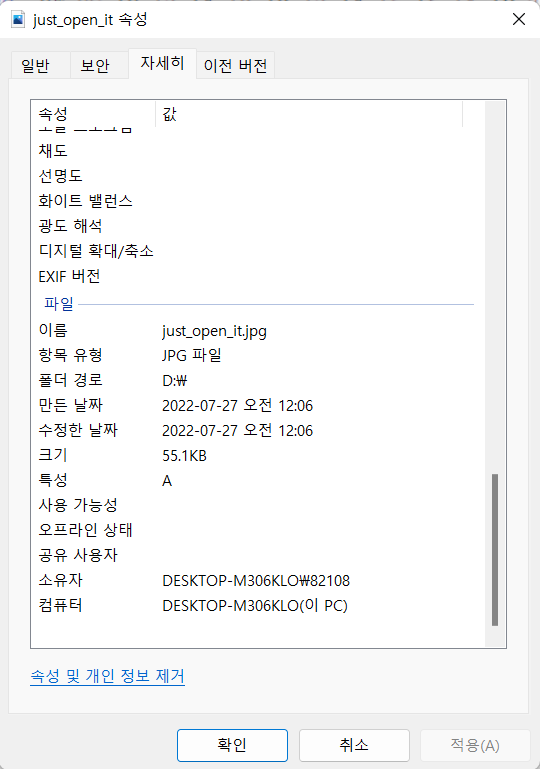 파일의 속성을 확인해보았다.