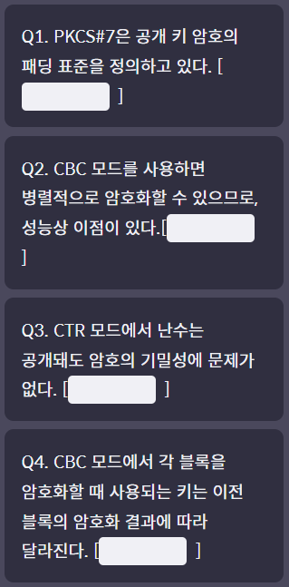 Q4. CBC 모드에서 각 블록을 암호화할 때 사용되는 키는 이전 블록의 암호화 결과에 따라 달라진다. X