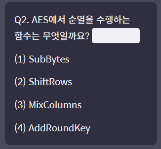 Q2. AES에서 순열을 수행하는 함수는 무엇일까요?