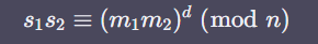 - 두 개의 유효한 메시지와 이에 대응하는 서명 쌍 (m1, s1), (m2, s2)을 알고 있다면 다른 유효한 평문과 서명의 쌍 (m1m2, s1s2) 생성 가능